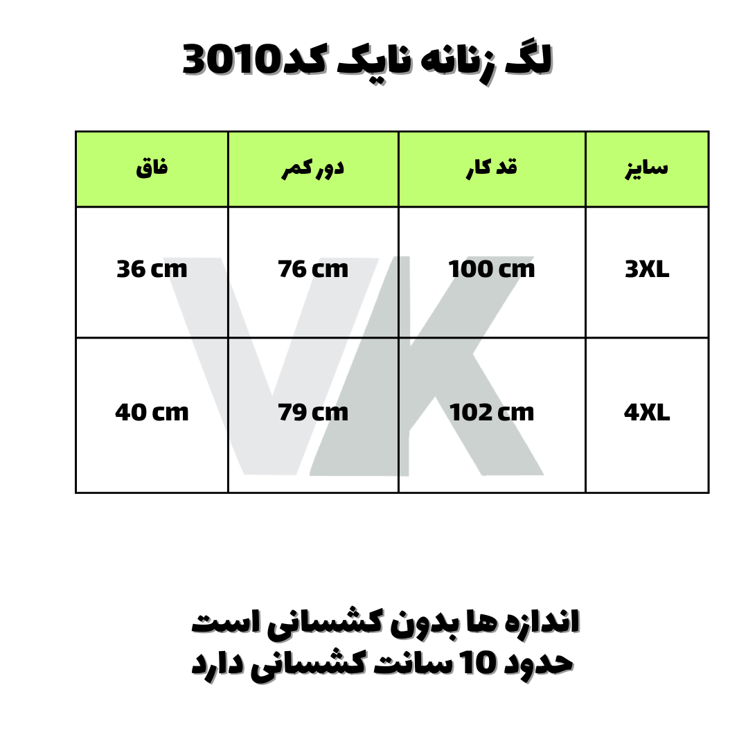 لگ زنانه پارچه غواصی نایک کد 3010 شناسه 10100374 سایزبندی 3XL/4XL