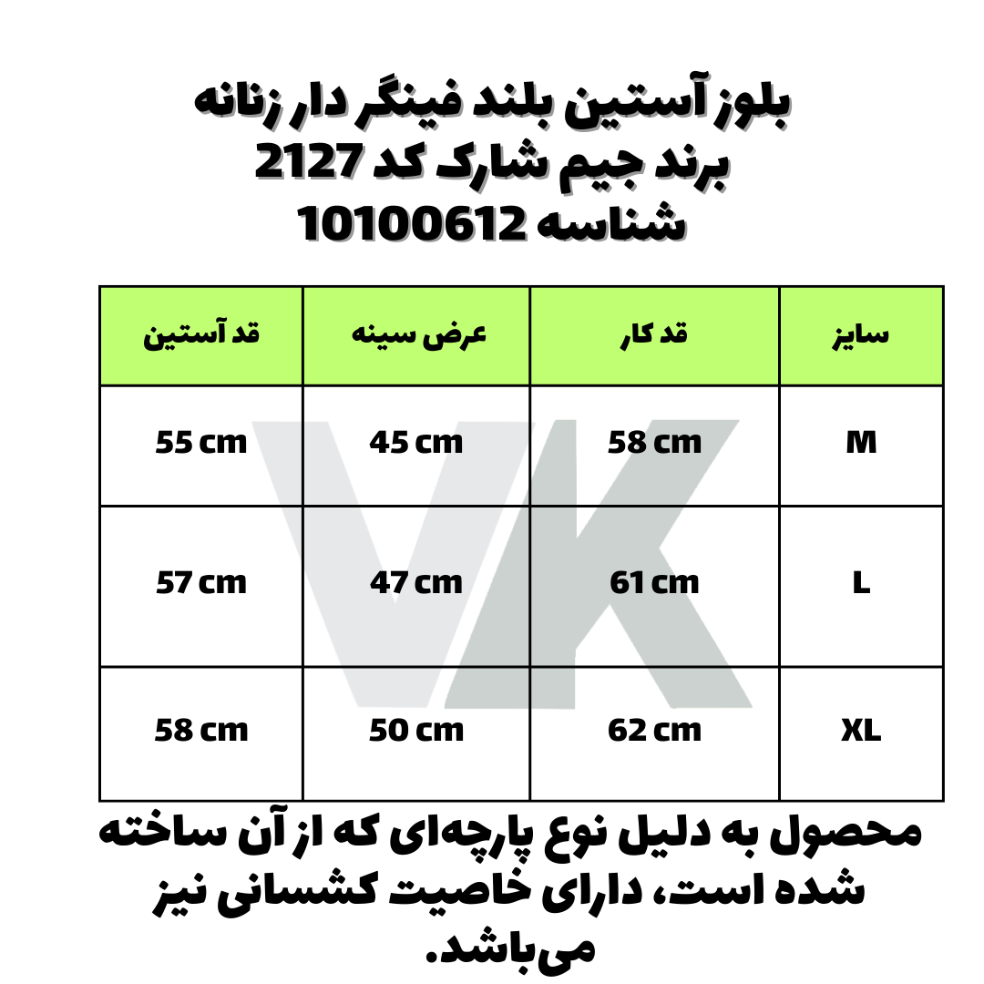 بلوز آستین بلند فینگر دار زنانه برند جیم شارک کد 2127 شناسه 10100612